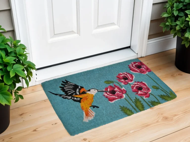 18 Coir Hummingbird Outdoor Door Mat – Vibrant Blue, Orange & Green, Durable, Eco-Friendly Welcome Mat