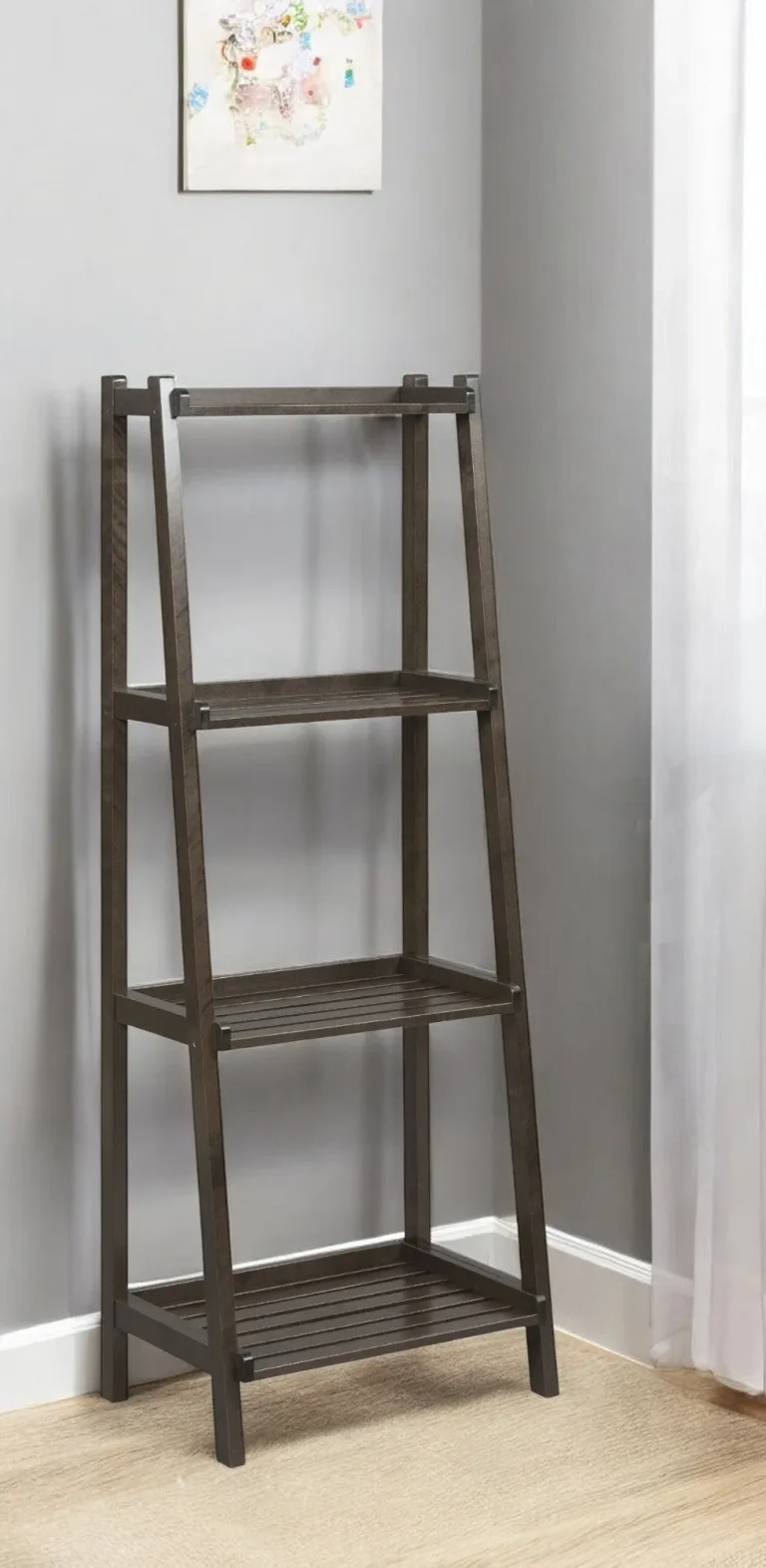 60 Leaning Ladder Bookshelf – 4-Tier Solid Wood Display Shelf in Graphite for Modern Spaces