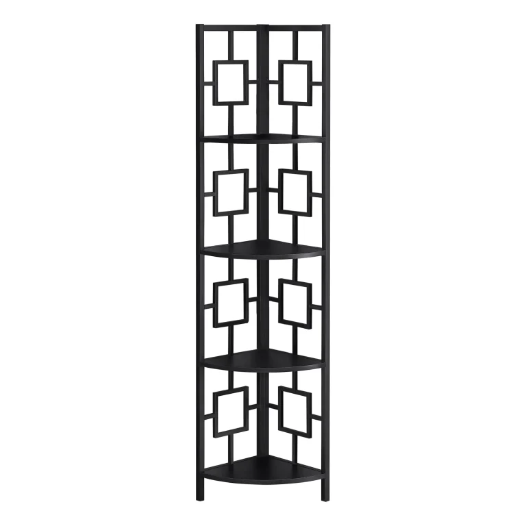 62 Black Metal Corner Bookcase – Stylish 4-Tier Storage for Books, Decor & Plants in Tight Spaces