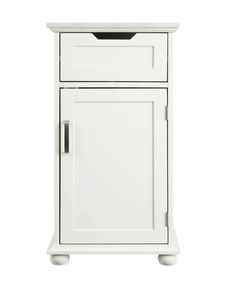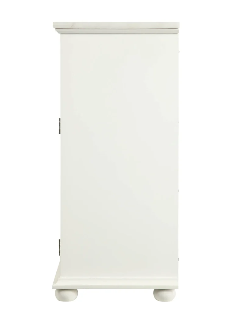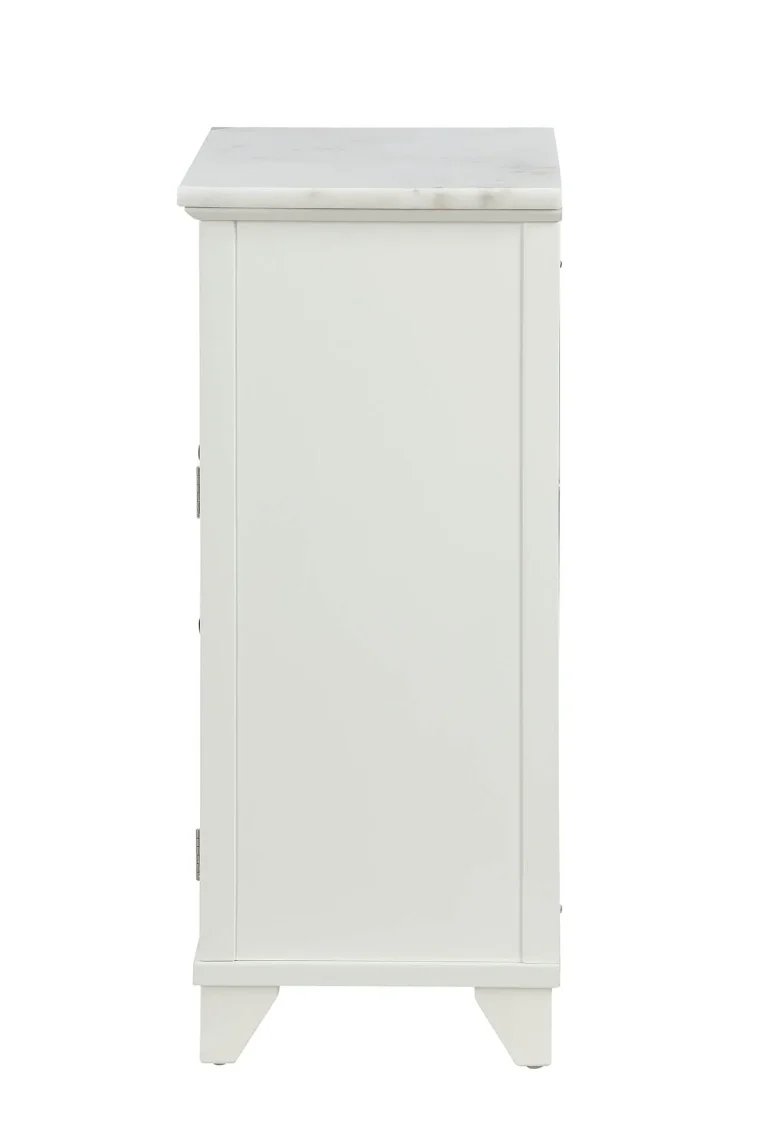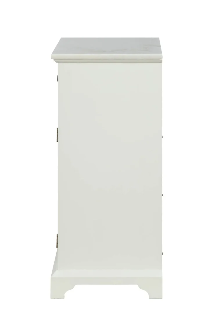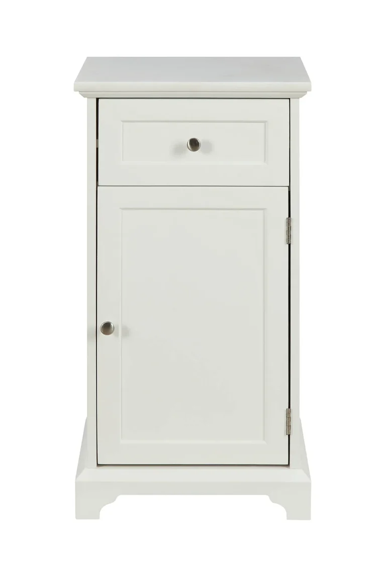 16 White Alluring Cabinet with Marble Top, Drawer & Door – Stylish Storage for Any Room Decor