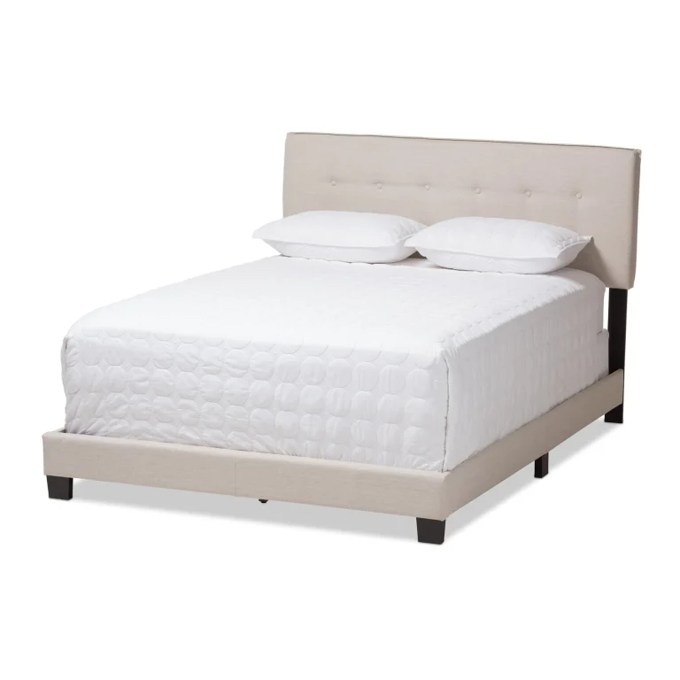 Audrey Full Size Bed – Modern Light Beige Upholstered Frame with Tufted Headboard & Simple Elegance