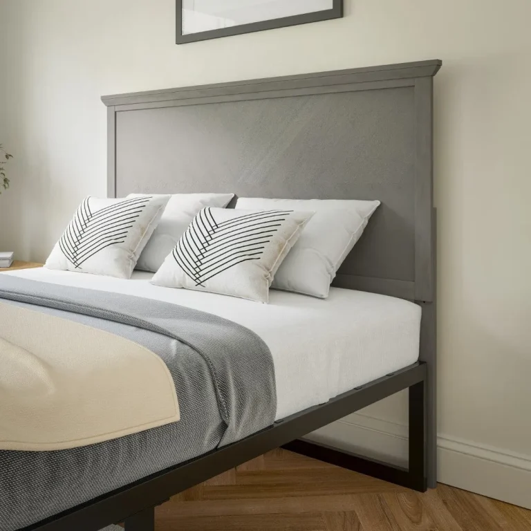 Adjustable Full Size Herringbone Wooden Headboard – Gray Wash Finish