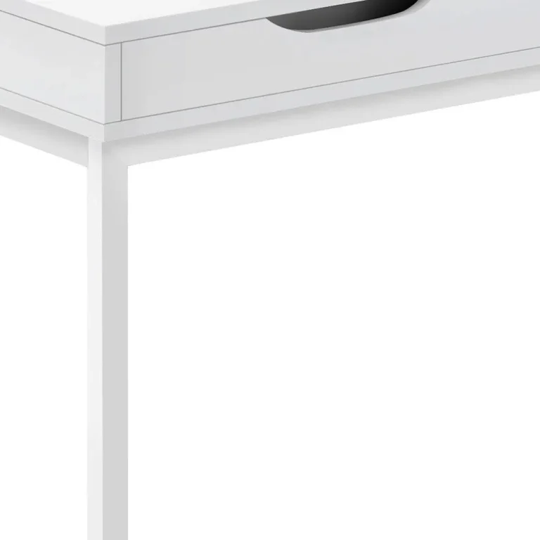 16 C-Shape White Metal Accent Table with Drawer – Perfect for Snacks, Drinks, and Devices!