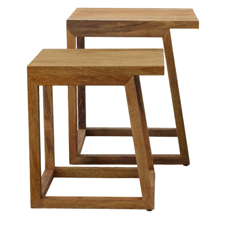 Space savvy and clean lined, this two piece wooden nesting side table set is sure to be a remarkable addition
