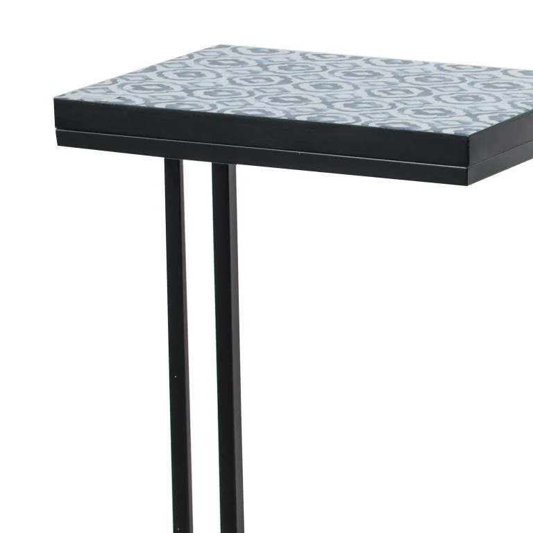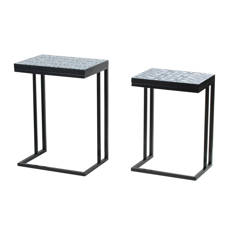 22, 24 Inch Nesting End Tables, Set of 2, Blue And White Pattern Top