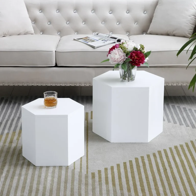 Coffee Tables Set of 2 – Stylish Nesting MDF Side & End Tables In White Oak For Any Space