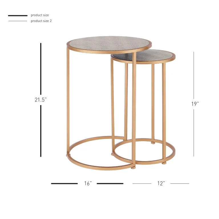 Anza Round Faux Shagreen Nesting End Tables Set – Chic Chronicle Gray with Gold Steel Base Finish