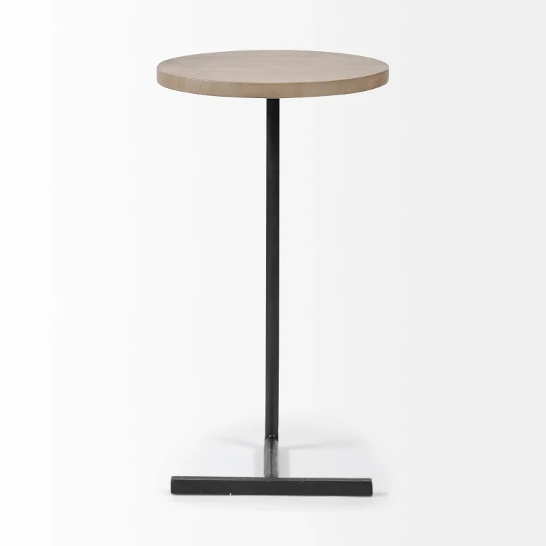 Brown Wood Round Top Accent Table – Stylishly Crafted with Black Metal Base for Modern Decor