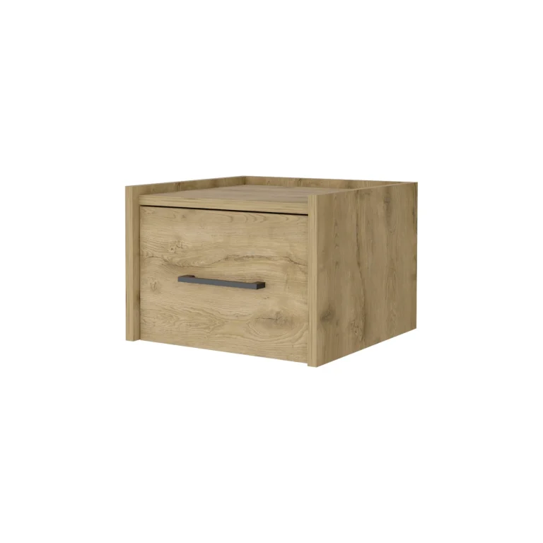 10 Beige One Drawer Faux Wood Floating Nightstand – Stylish Storage Solution for Any Room Decor