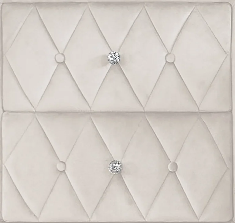 1 Piece Faux Marble Top Nightstand with 2 Drawers – Elegant Ivory Finish & Button Tufted Design