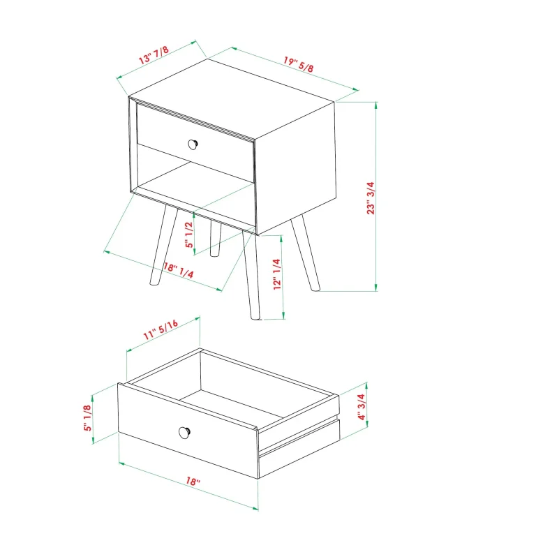 1-Drawer Midcentury Nightstand Set of 2 – Sleek Design with Storage for Stylish Bedroom Organization