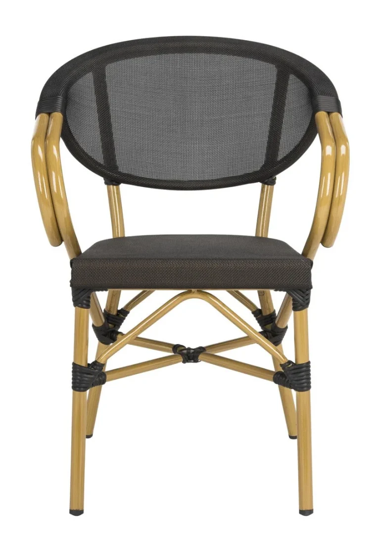 Burke Stacking Arm Chairs Set of 2 – Luxurious Black Rattan PE Wicker & Aluminum for Outdoor Elegance