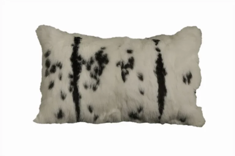 12 Black and White Rabbit Zippered Natural Fur Throw Pillow – Chic Animal Print Decor Accent