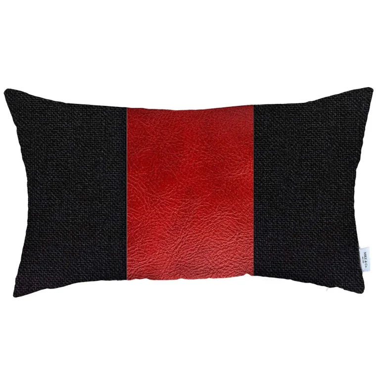 Unique and decorative, this comfortable 12′ x 20′ black and red geometric zippered handmade polyester lumbar pillow cover will leave