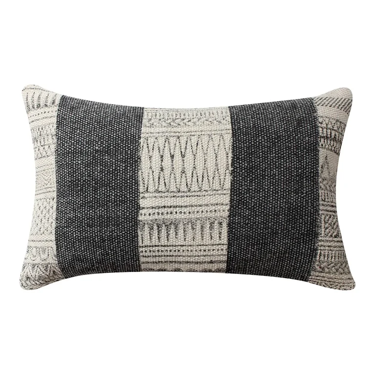 With neutral gray and white colors, this accent lumbar throw pillow makes a wonderful fit for your assorted sofa cushions,