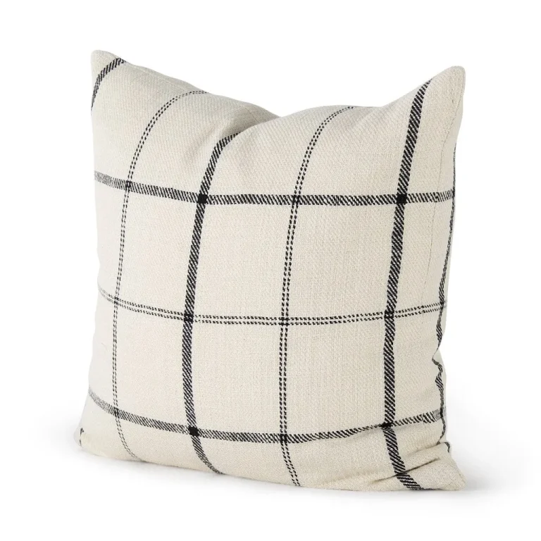 1 Beige and Black Linen Pillow Cover – Durable Decorative Accent for Sofa, Chair, or Bed Ensemble
