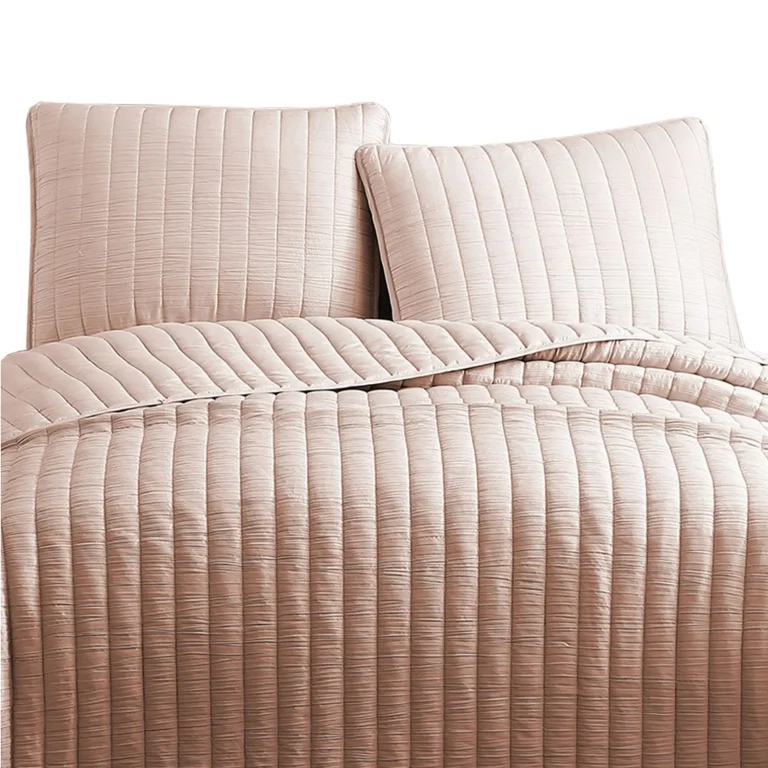 3 Piece Crinkles Queen Size Coverlet Set with Vertical Stitching, Pink