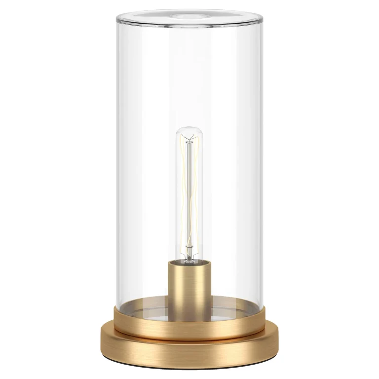 13 Brass Metal Table Lamp with Clear Cylinder Shade – Stylish Home Lighting for Any Space