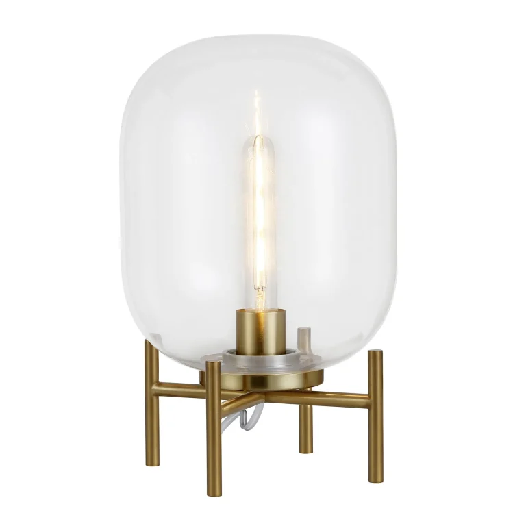 15 Brass Metal Table Lamp with Clear Glass Shade – Elegant Design for Warm Home Lighting Decor