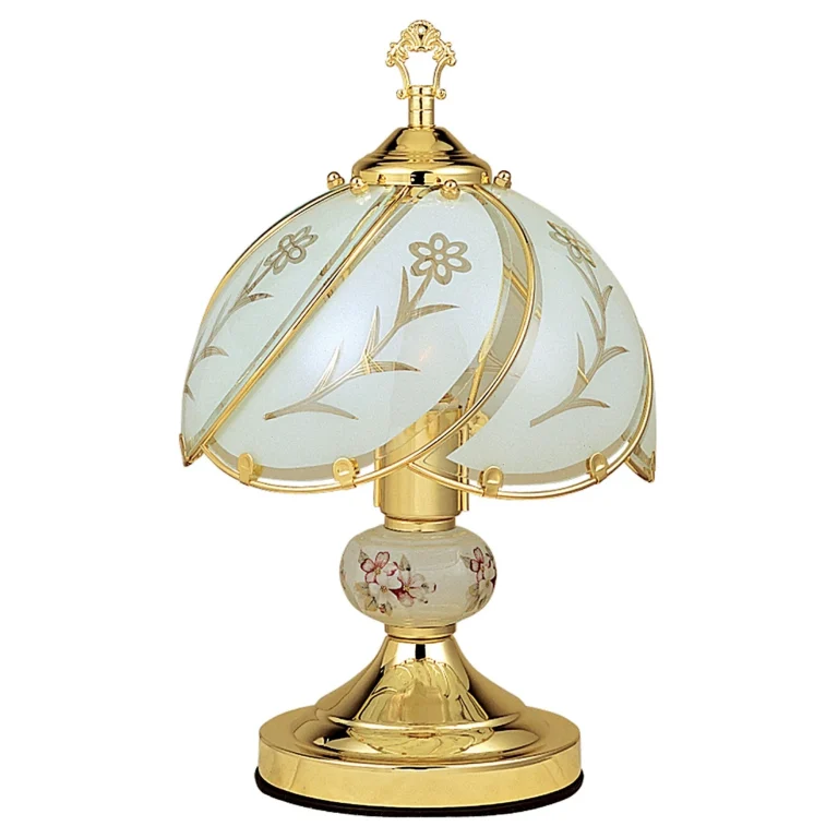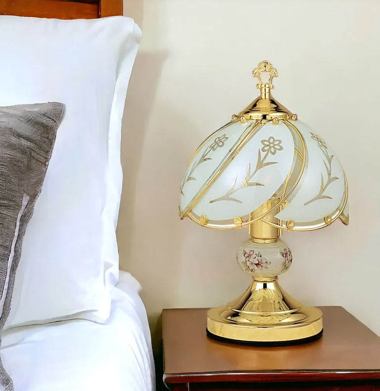 14 Gold Bedside Table Lamp – Elegant Floral Frosted Glass Shade for Cozy Bedroom Ambiance