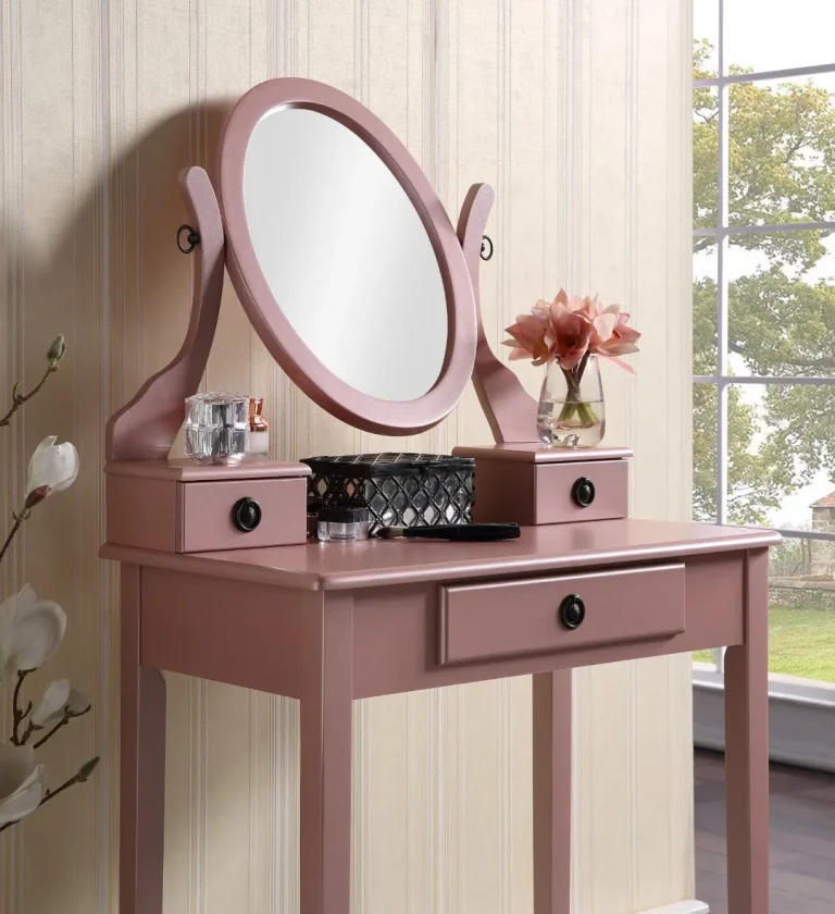 Rose Gold Vanity Set with Mirror, Stool & Storage Drawers – Sanlo