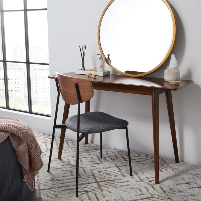 Sasharose Makeup Table – Elegant Walnut Finish with Mid-Century Charm for Stylish Interiors