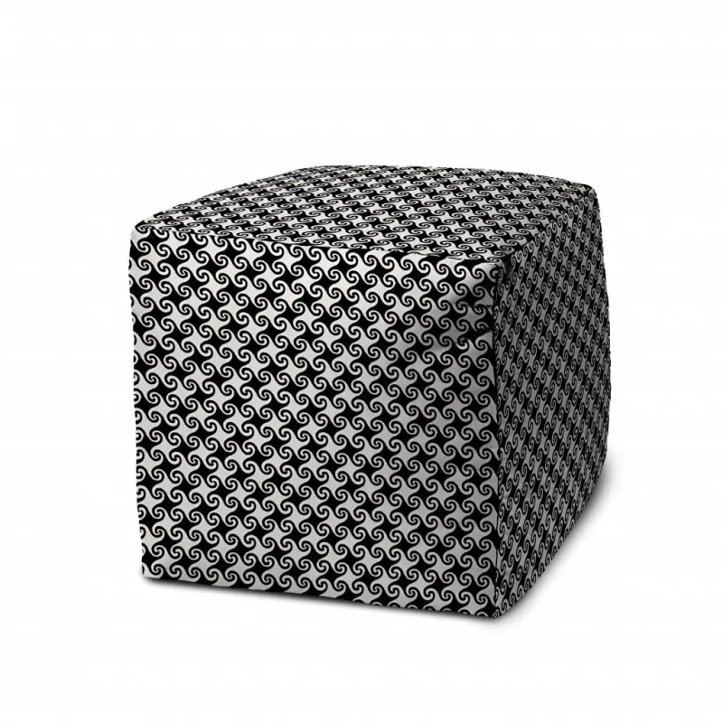 474350 Stylish 17 Black and White Geometric Pouf Ottoman – Versatile Indoor/Outdoor Seating Solution