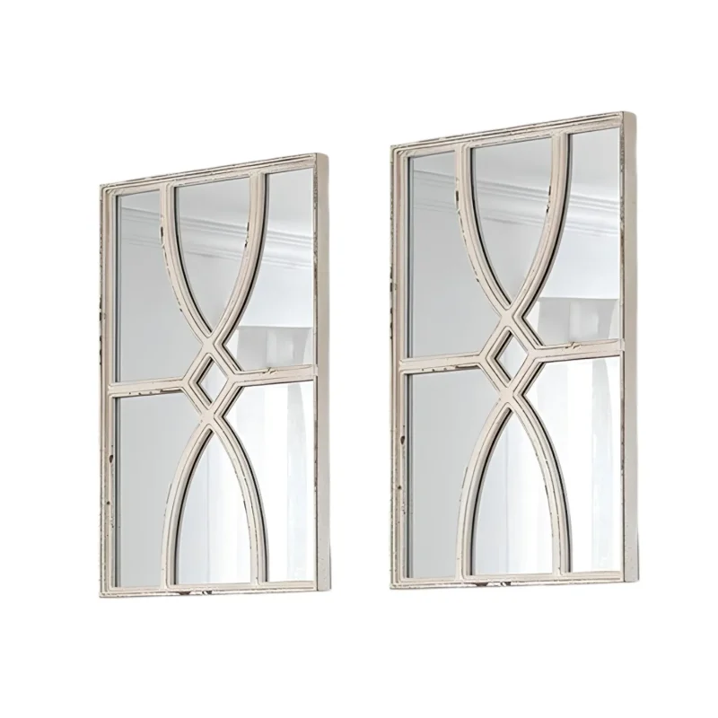 Set of Two Elegant White Framed Accent Mirrors – Stylish Rectangle Design for Home Decor Charm