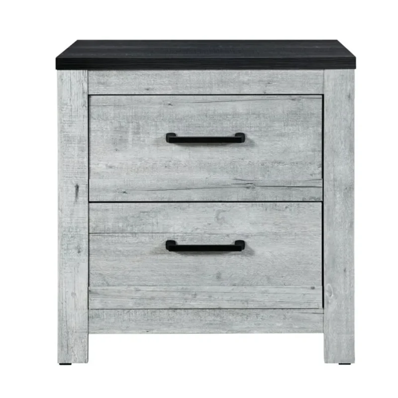 24 Rustic Gray and Black Two Drawer Wood Nightstand – Stylish Storage Solution for Any Bedroom
