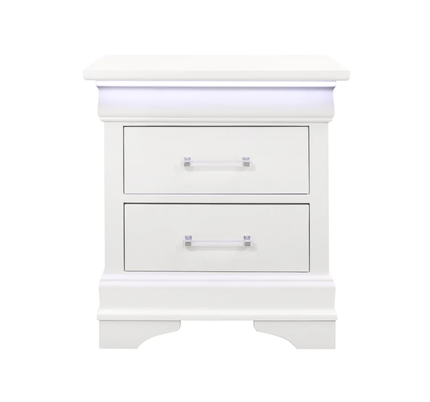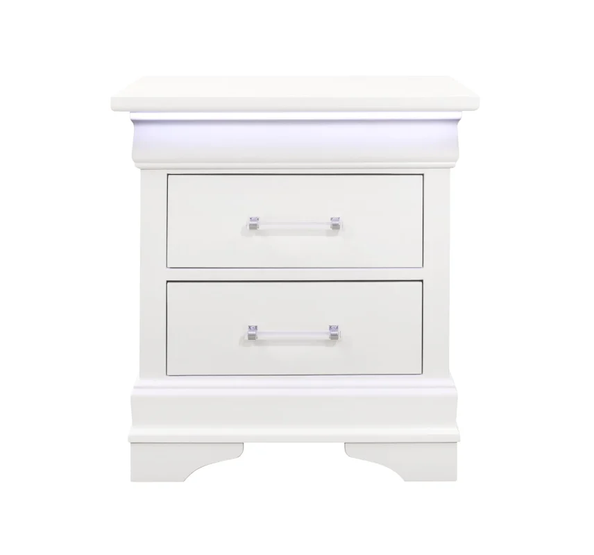 Good looking design and practical styling meet to form this 24′ white two drawer nightstand. The piece has 2 drawers