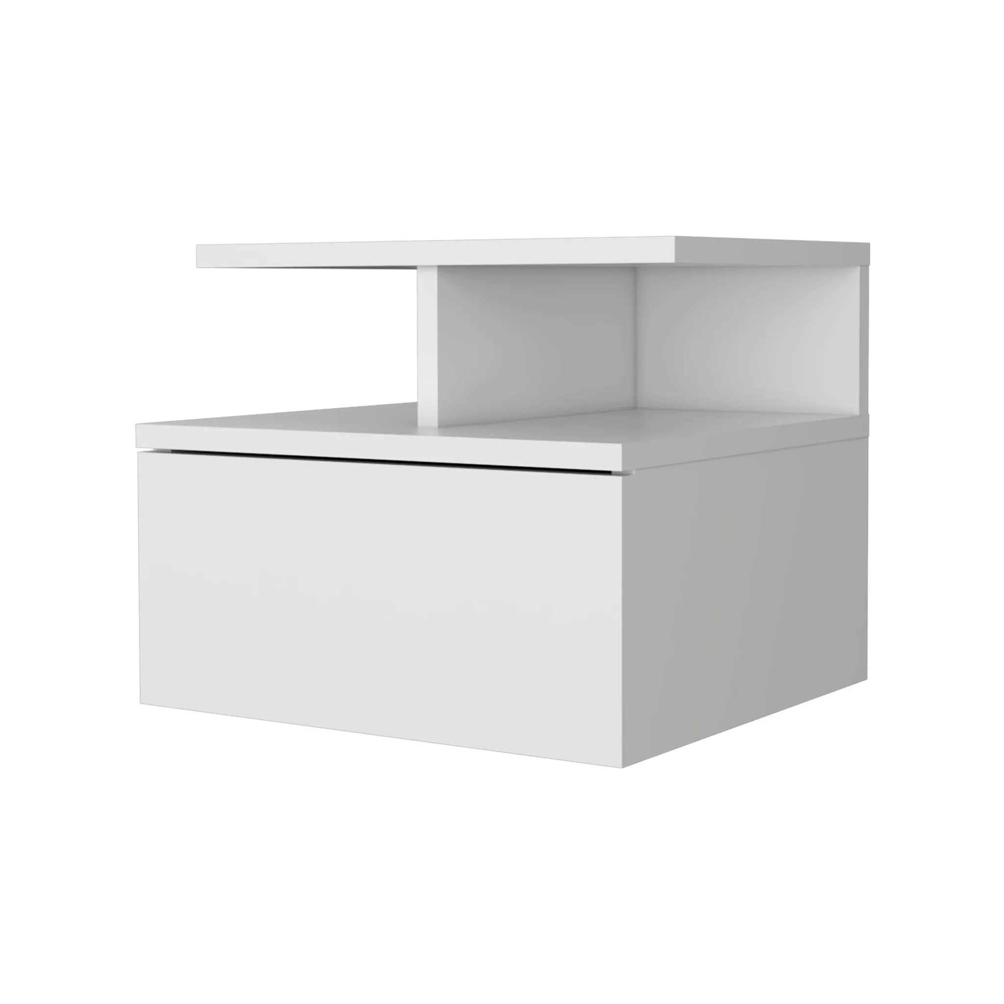 Good looking design and practical styling meet to form this 12-inch wood one drawer floating nightstand. Maximize your floor space and adjust to the exact height you need, when you add this wall-mounted design to your space. Sturdy and durable construction from manufactured wood ensures this trusty bedside table is built to last. Includes a drawer to help keep your essentials close by and hidden. An easy-access shelf gives you additional storage and display space. The unsung hero of the bedroom, this nightstand is perfect for keeping a glass of water, lamp, alarm clock, jewelry, and more, close by and easily accessible. 11.6-inch h x 14-inch w x 13.2-inch d.
