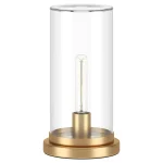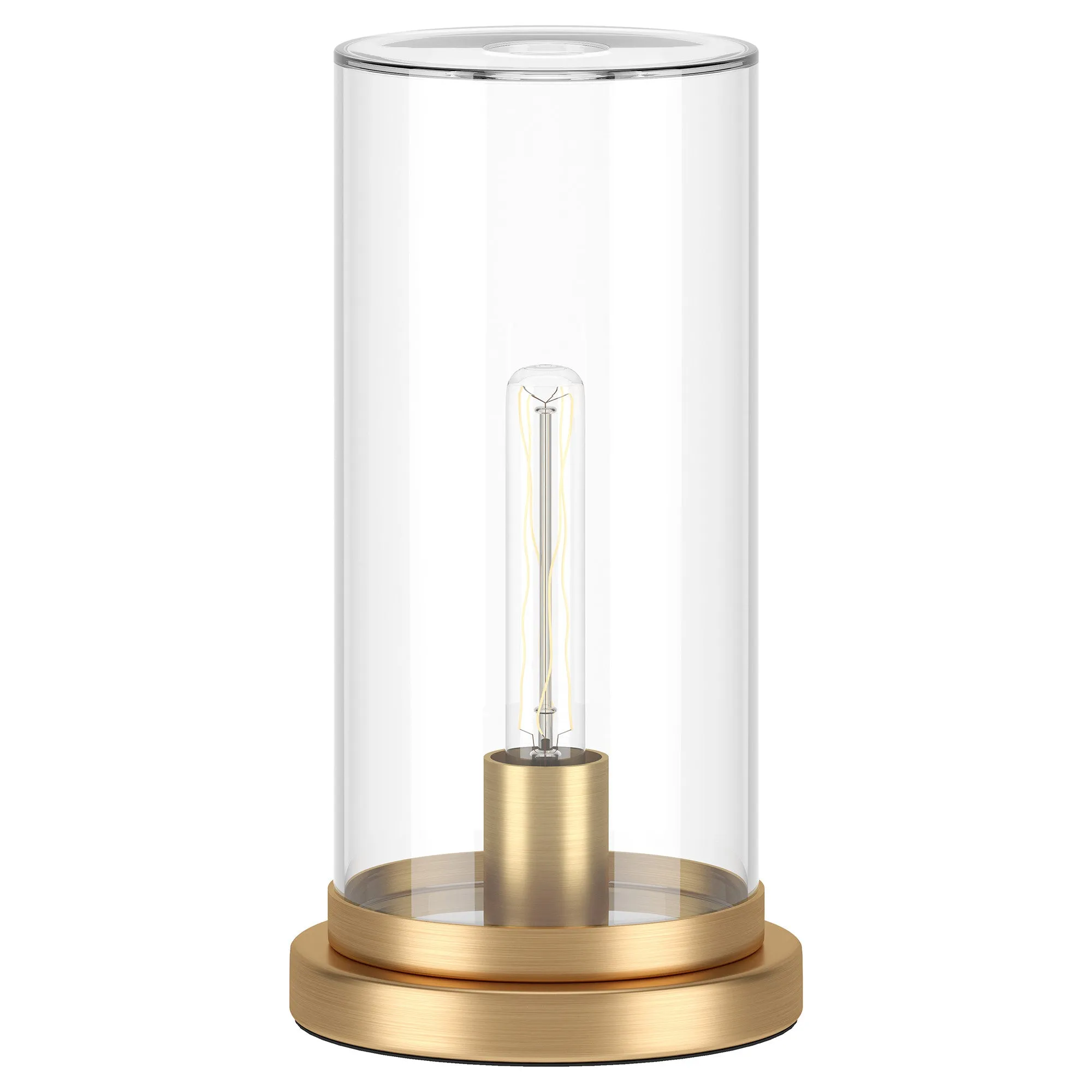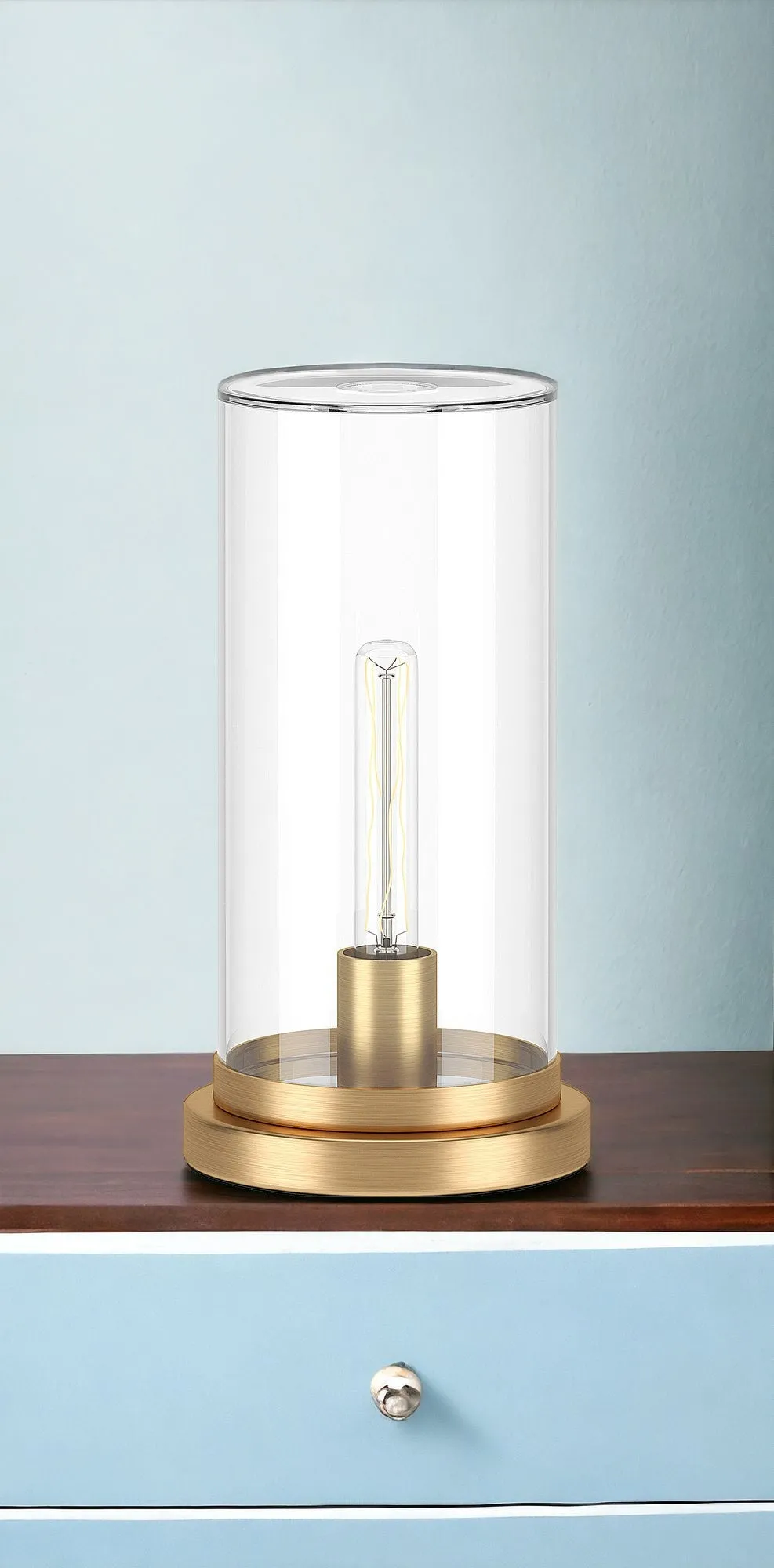 This 13-inch brass metal table lamp with clear cylinder shade is the perfect combination of design and function. The lamp is made of sturdy metal and features a brass color. Includes a clear glass, cylinder shaped shade, making this a fashionable piece that will complement most any interior. This standard table lamp is designed to provide general lighting to the area. Use this lamp anywhere and elevate the look of the whole space. The perfect lamp to create just the right natural and soothing light in your space. 13.25-inch H x 7.13-inch W x 7.13-inch D