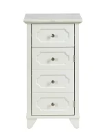 whether you want this classic cabinet in your bedroom or dressing room, it will seamlessly anchor any existing setting. beautifully fashioned with engineered wood frame, this accent piece has got an appealing profile that will quickly become a focal point in any room. it features a marble top with a drawer and a wooden door with demo drawers design on the bottom part, meaning there is ample space for keeping and organizing your personal essentials. the overall construction is creatively finished in white that can easily match any existing room decor.