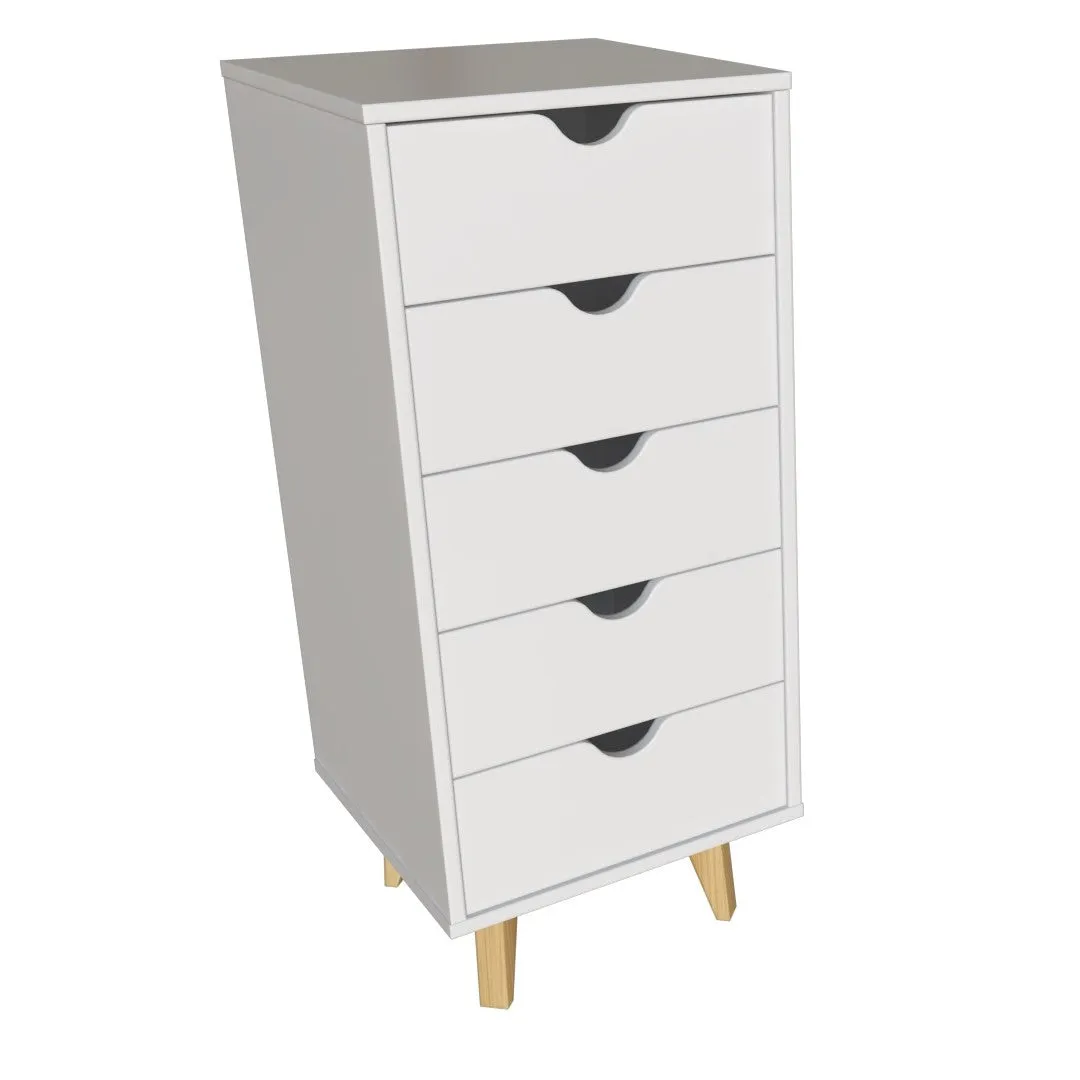 Home » Shop » 16 White Solid Wood Five Drawer Lingerie Chest – Elegant Space-Saving Storage for Cozy Bedrooms