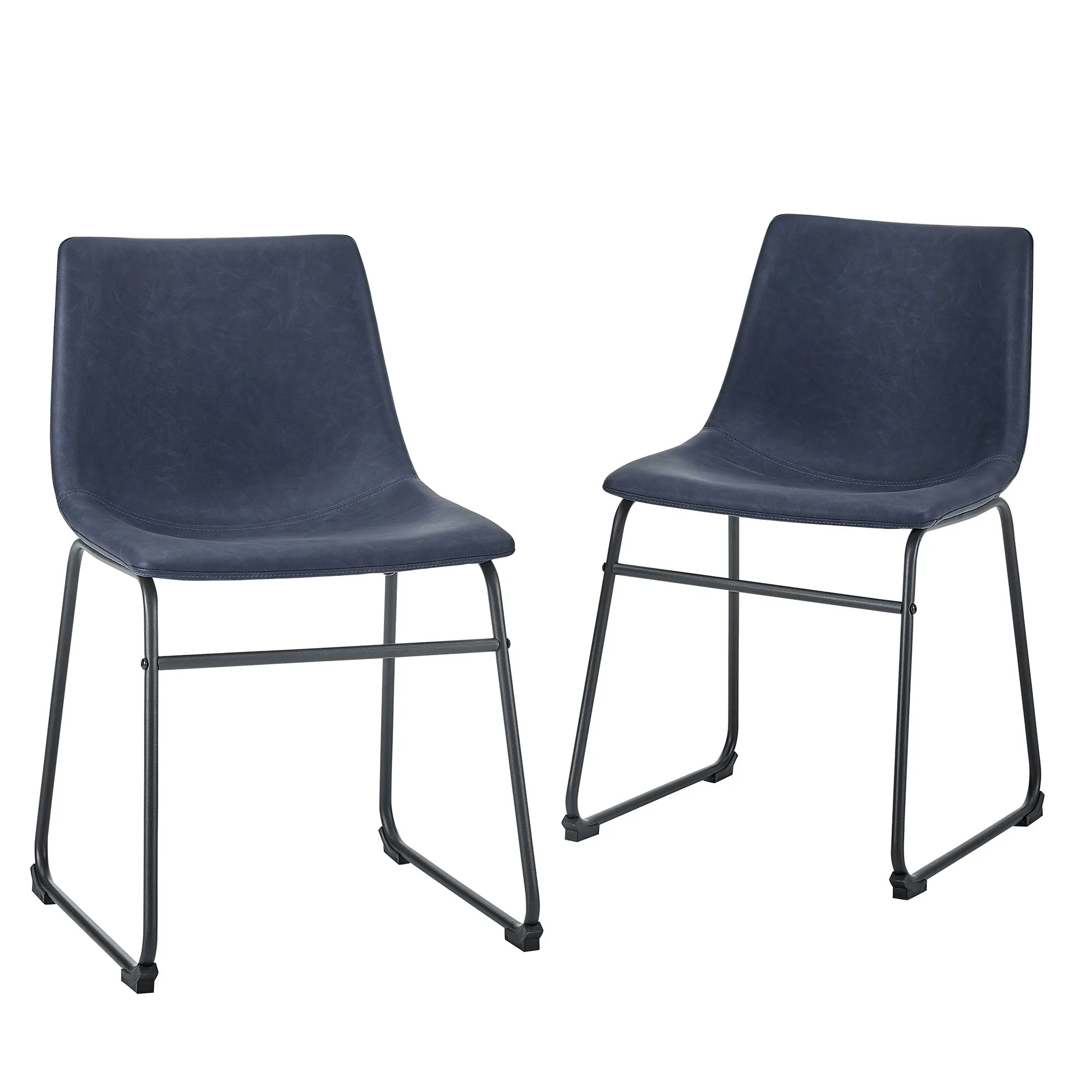 Bring the sophisticated look of leather seating to your kitchen with these faux leather dining chairs. They’ll be the perfect addition to your eating space and are great for everyday use. The synthetic leather is soft to the touch, the curved seating provides comfort and the seat is supported by powder-coated steel legs for a durable, long lasting design. These chairs look best in an urban industrial styled space, but also can coordinate well with many other popular interior styles and can be used in home offices and living rooms as an accent chair.