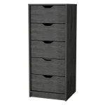This 18-inch gray five drawer standard chest is a practical and good looking accent for your bedroom storage and organizational needs. The space saving design of this standard chest makes it a great choice for space challenged spaces or small walls within your room. Equipped with five easy open drawers for practical and good looking clothing storage. Its a high quality piece, made from high grade manufactured wood. The gray coloration of this piece is neutral and will blend easily with most any decor. 42.4-inch H x 17.7-inch W x 16.3-inch D
