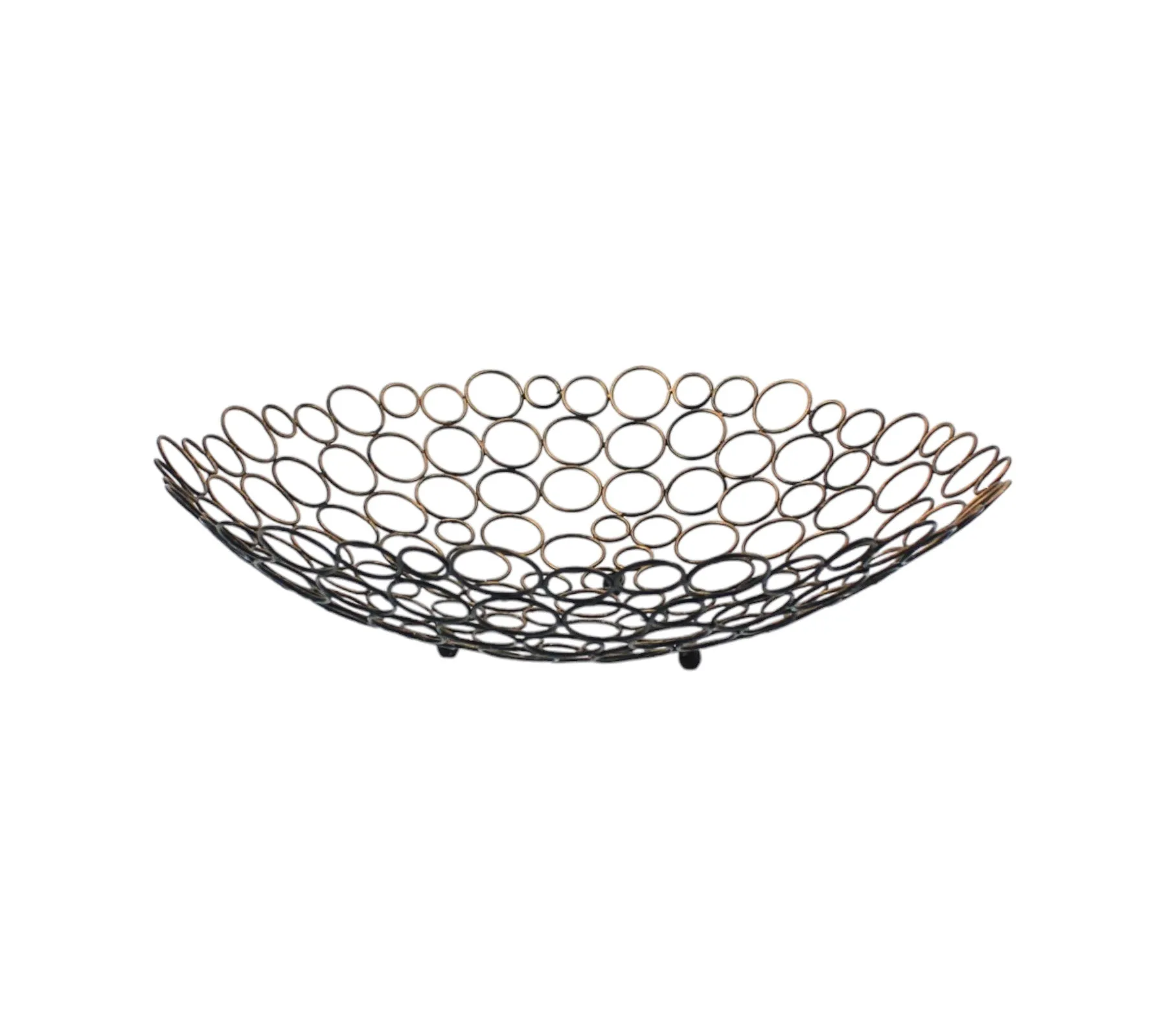 • Bronze centerpiece bowl with a round shape crafted from metal.
