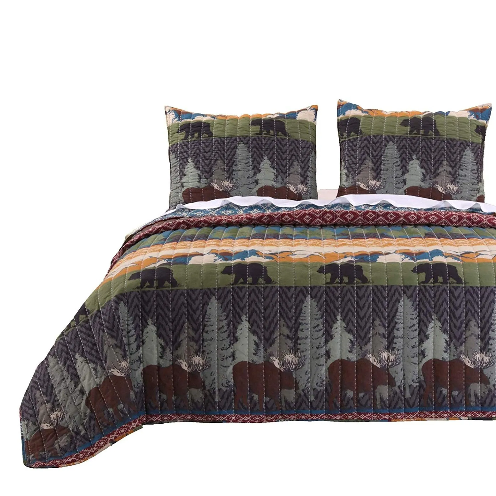 - Print includes big game moose, Black bear, trees and snow-capped mountains