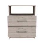 Give your room the look and feel of 5-star accommodations with this 20-inch gray two drawer faux wood nightstand. Robust in design, the bed side table has been expertly crafted from manufactured wood. Includes 2 drawers to give you multiple storage options to keep clutter at bay. An easy-access shelf gives you additional storage and display space. The unsung hero of the bedroom, this nightstand is perfect for keeping a glass of water, lamp, alarm clock, jewelry, and more, close by and easily accessible. Versatile in use this nightstand would also work as a great end table in the living room, hallway, or office. 19.9-inch H x 16.02-inch W x 12.9-inch D