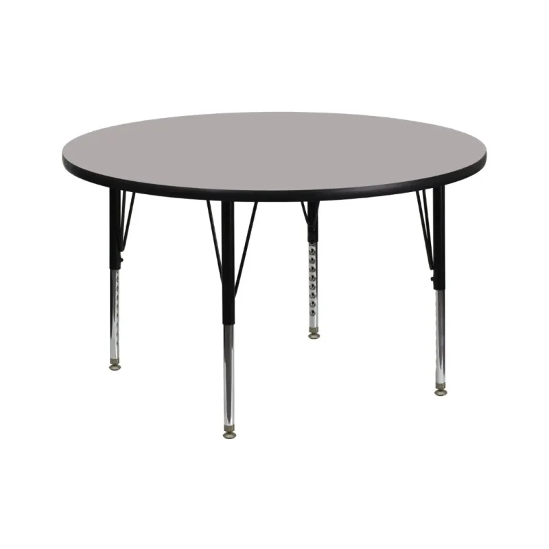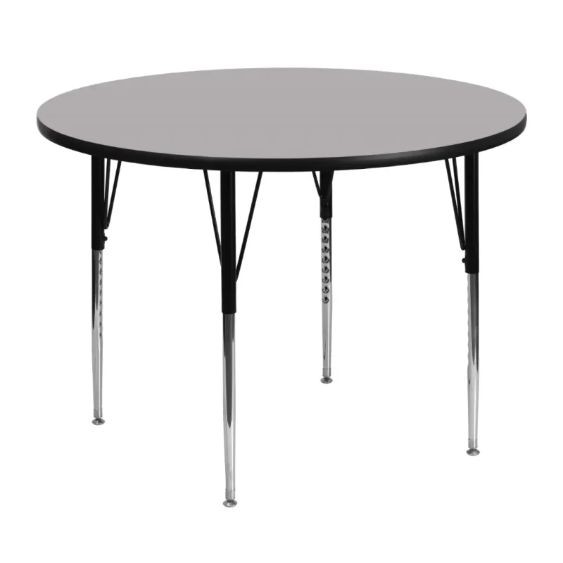 48” Round Grey Thermal Laminate Activity Table – Adjustable Height Legs