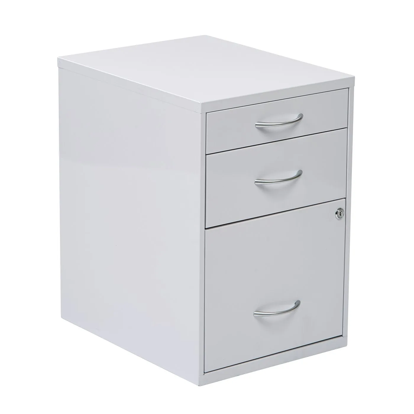 Provide the perfect solution for keeping pencils, pens, accessories, and files neat and tidy with our 3-drawer heavy-duty file cabinet. Top drawer is perfect for small loose items, mid-drawer accommodates your chargers, cords and accessories and the standard size locking file drawer keeps all important documents organized and private. Create a fun and casual workspace or organize a home office with our wide array of playful colors all in durable heavy-duty metal. All surfaces clean up with just a wipe. Arrives fully assembled.
