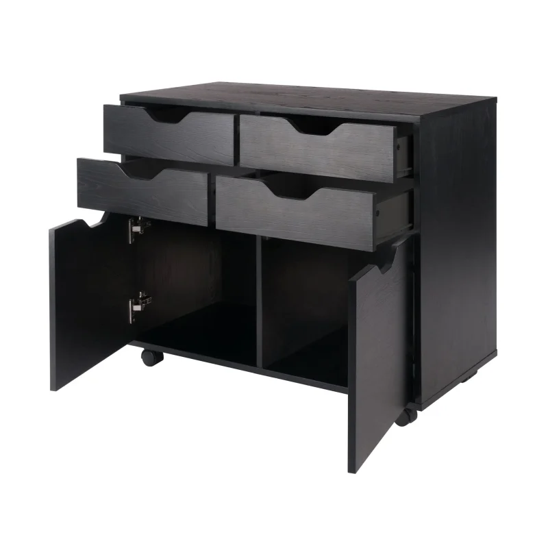 Halifax Mobile Storage Cabinet – 2-Door, 4-Drawer Organizer for Home-Office & Craft Supplies, Black
