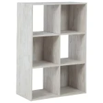 Whether to place your books or display decorative items, this six cube Organizer is a perfect add on to your existing furnishing. Made from solid wood in the hue of washed white, it showcases an open and closed back design complemented with grain details.