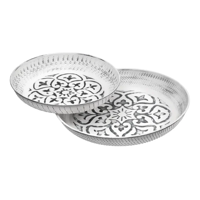 Joslyn Set of 2 Coastal Decor Plates – Elegant Gray & White Iron Design for Traditional Spaces