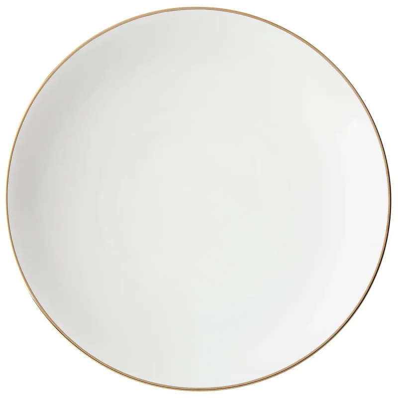 Crafted in a gentle, cool white with microwave-safe gold accents, this dinner plate is an effortless way to dress up