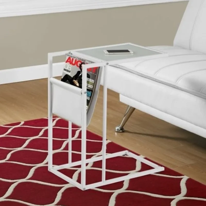 White Modern Metal and Glass TV Table – Stylish & Functional Accent Table for Living Room Use