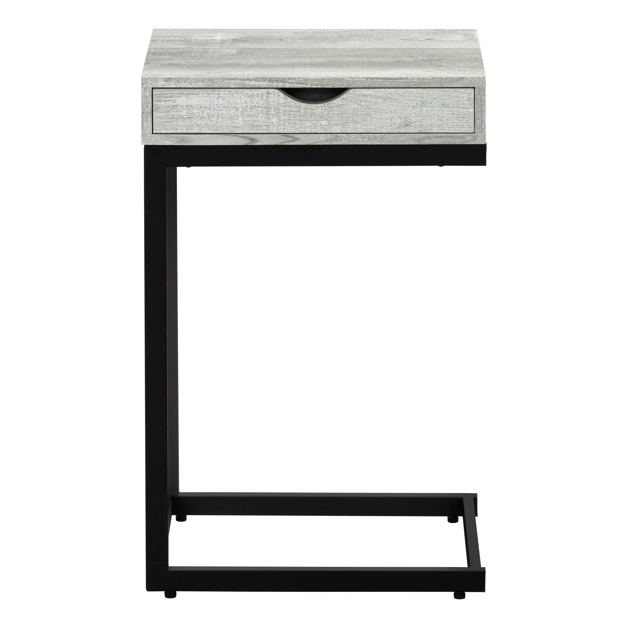 With a whole lot of classiness, this industrial C shape side and end table also comes with all the practicality you need. An ideal fit alongside your sofa or bed, the accent table is perfect for your small home, apartment or condo and will surely bring more jazz to your movie night, study session or quiet time. Featuring a trending grey reclaimed wood look, the sturdy black metal base sits slightly off the ground to prevent damage to your floor. Don’t forget a convenient storage drawer for any living room accessories such as remotes, coasters, magazines or more. Make this your new favorite living room piece.