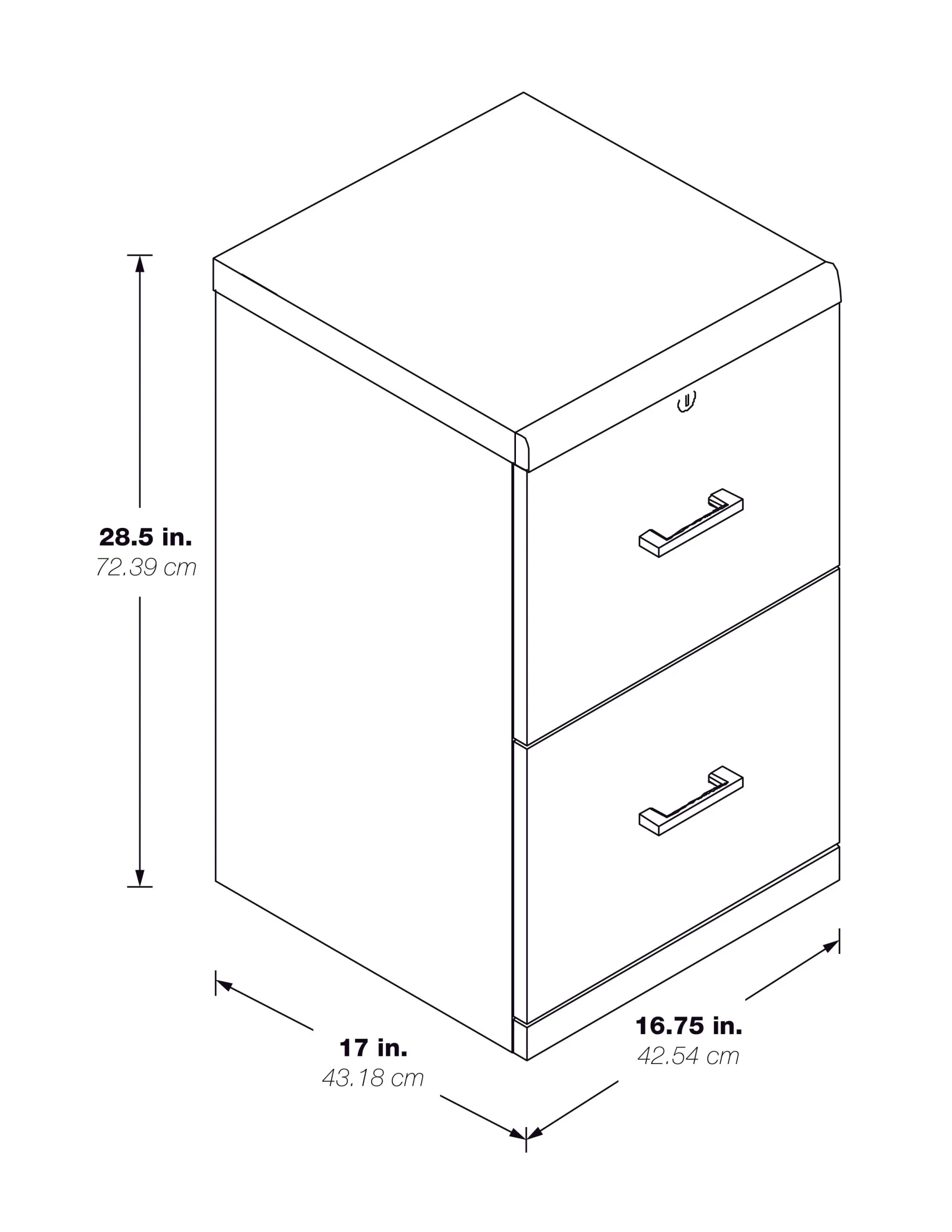 Keep everything organized and secure with our 2-Drawer, locking vertical file cabinet. Attractive drawer pulls paired with euro-style easy glide hardware allows each drawer to open and close with ease. Letter size file capability with locking top drawer. Simplify assembly with Lockdowel™ fasteners, which are invisible, creating a tight joint and a finished look. The Lockdowel™ fastening system is designed to simply slide components into place for quick, sturdy assembly every time.
