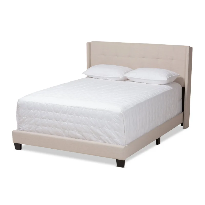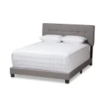 Enjoy the minimalist elegance of the Audrey queen size bed. The modern and contemporary-inspired design features clean lines and timeless style. The sturdy frame of the Audrey is upholstered in light grey fabric with a foam-padded, button-tufted headboard. The simplistic design of the bed makes this a versatile piece to add to or refresh your bedroom or guest room. The low profile footboard styling of the Audrey further augments its overall sophisticated and unfussy aesthetic. This queen size bed is designed for use with a box spring and mattress. Made in Malaysia, the Audrey requires assembly.