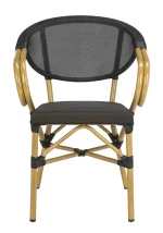 Designed for contemporary royalty, this stacking arm chair is a new classic. Created to pair the haute design of historic French furnishings with a casual luxe style, its black wicker construction makes it perfect for any outdoor living or dining room.